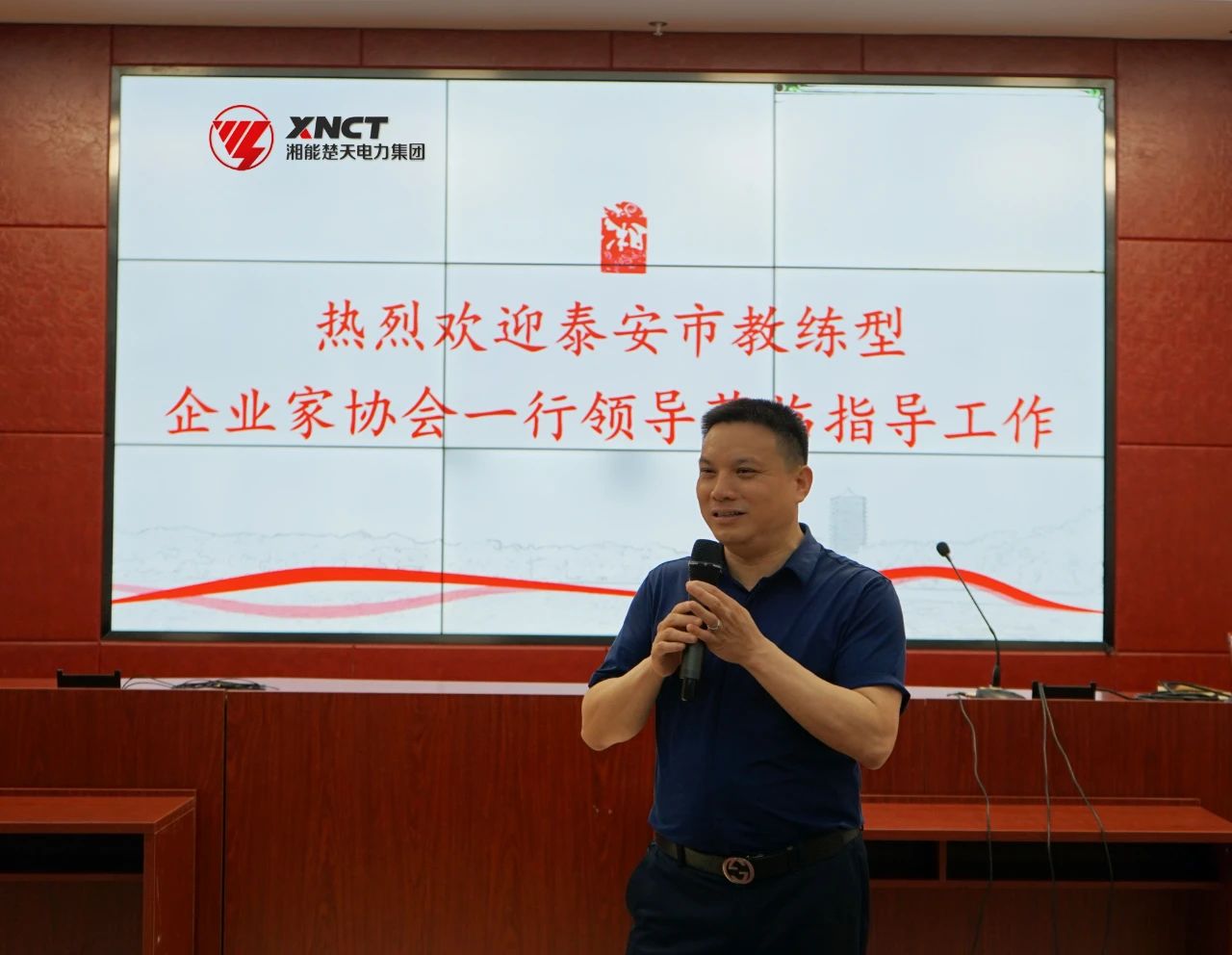6月22日上午,由山东泰安巨鼎有限公司董事长、泰安市教练型企业家协会会长杜欣涛带队泰安市教练型企业家协会一行成员组49人莅临湘能楚天电力集团参观指导工作,长沙市湘能楚天公益服务雷火中国有限公司官网理事长、湘能楚天电力集团董事长陈伟其、行政后勤雷火中国有限公司官网总监刘正安等陪同。