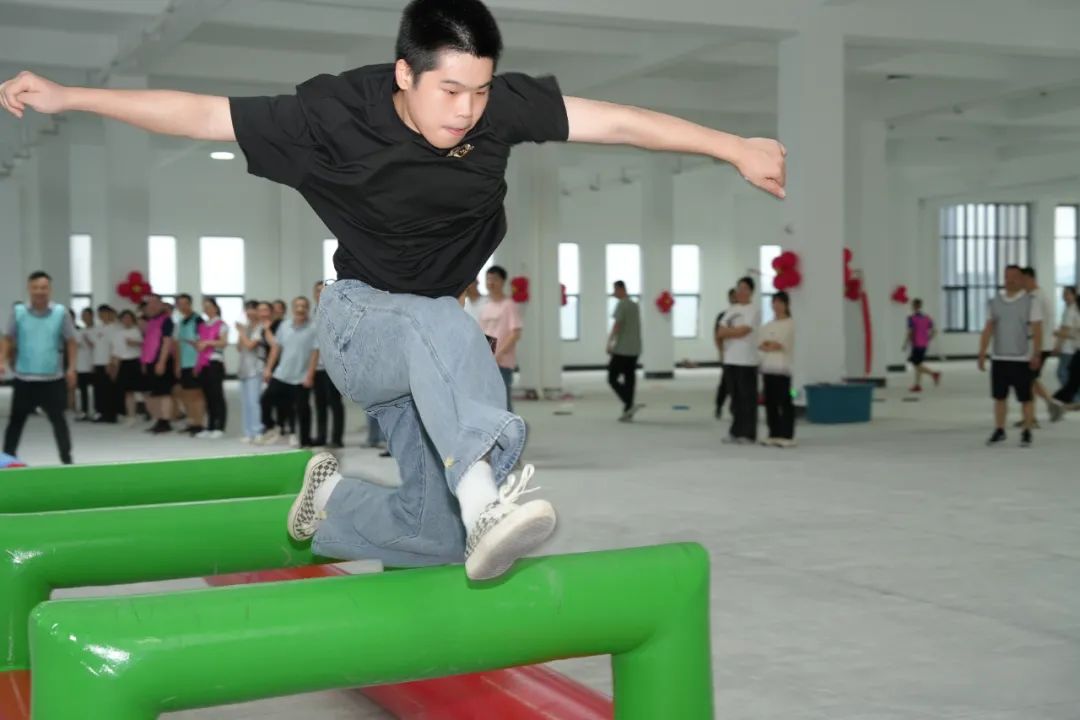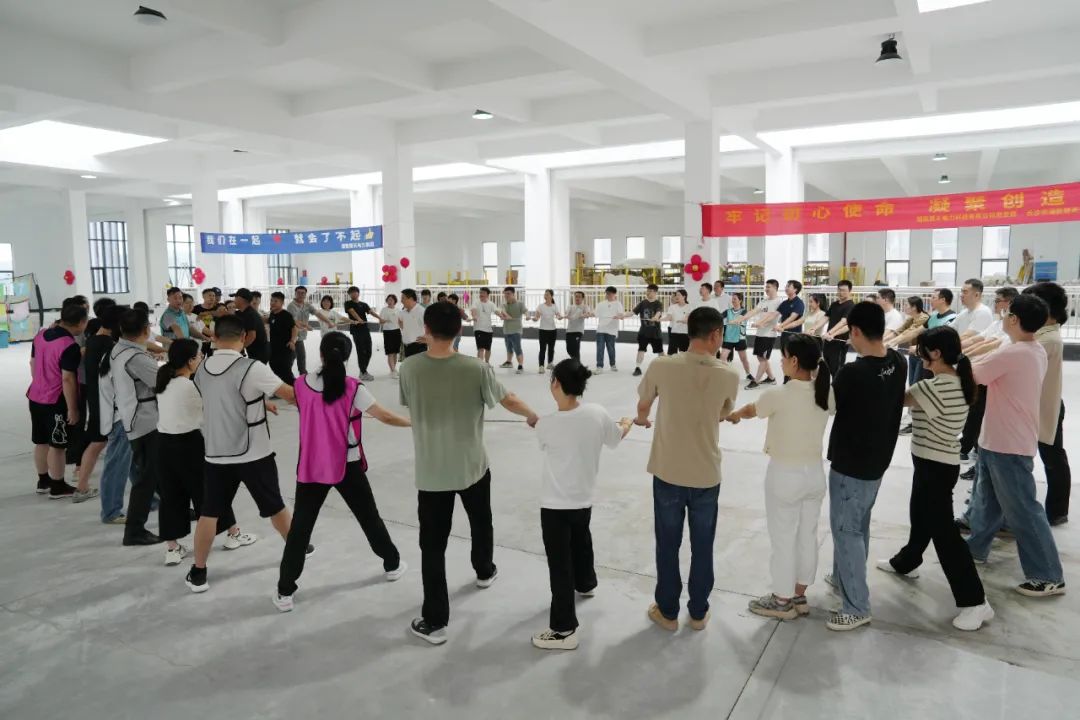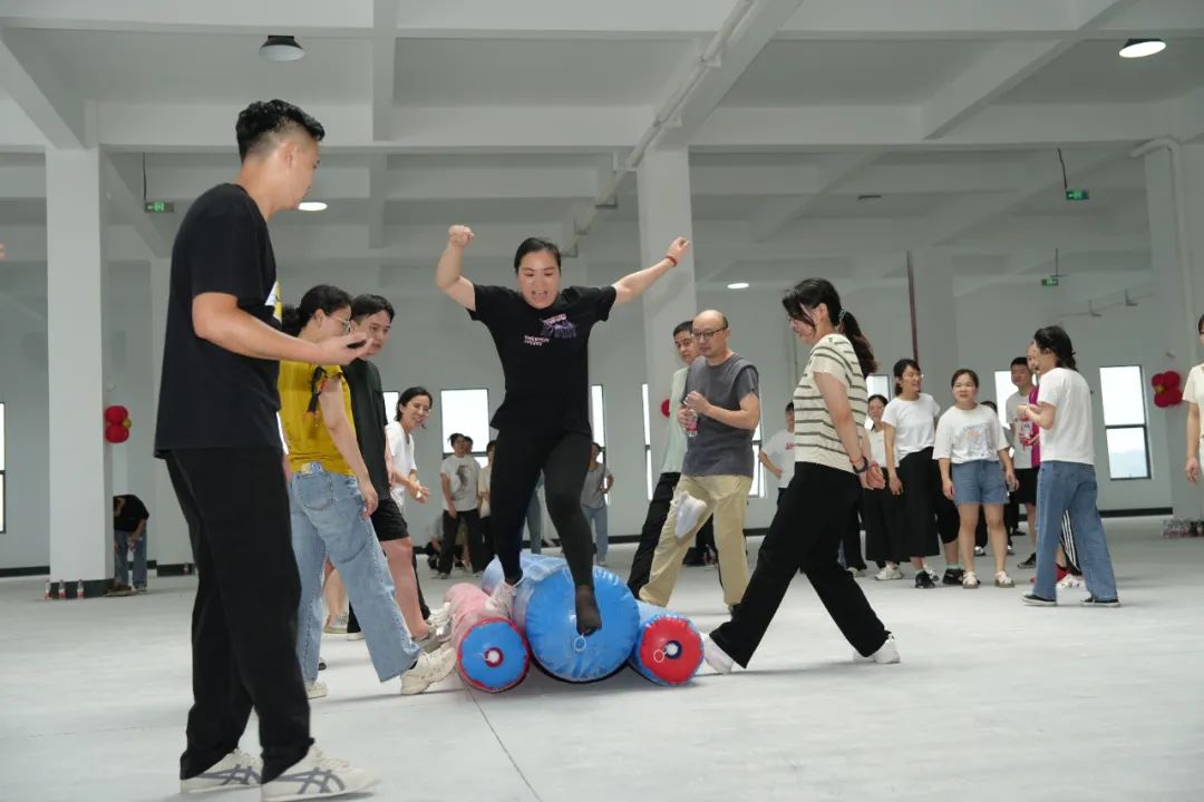 在教练带领大家进行充分热身之后,团建活动正式拉开序幕,6支团队分别起了各具特色的队名与振奋人心的口号,在“超级障碍赛”、“飞盘嘉年华”与“蒙眼博弈”等前三个竞技游戏中,队友奋力拼搏、相互团结协作,用耐心和智慧出色完成每个项目,对手之前本着“友谊第一、比赛第二”的体育精神,相互尊重,在充满挑战性和趣味性的活动中赛出了风格,赛出了水平。在最后一个“动力圈”游戏项目中所有人团结协作、配合默契,勇于挑战的精神风貌充分展现了湘能楚天大家庭团结向上、锐意进取的昂扬斗志。整个活动现场气氛活跃而又热烈,每个人在挥洒汗水的同时,也享受了趣味运动带来的乐趣,提升团队的凝聚力和集体向心力的同时营造了温馨、愉悦的企业文化氛围,进而增强了员工对企业的归属感。我们在一起,就会了不起。<<<向左滑动欣赏更多精彩瞬间...