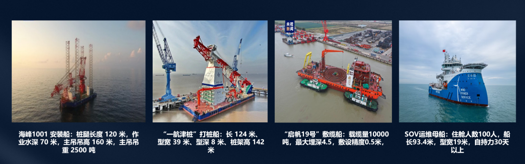 同时,相对于2021年海上风电施工平台短缺的状态,近两年我国海上风电施工能力有了较大幅度提升,《2023年中国风电行业深度报告》统计,截止2023年底,国内共有有海上风电施工船舶74艘,其中64艘已经投入运营,10艘施工船还处于建设阶段。另外,随着海上风电大型化、深远海发展进程加快,大兆瓦的海上风电施工平台也加速下水交付。