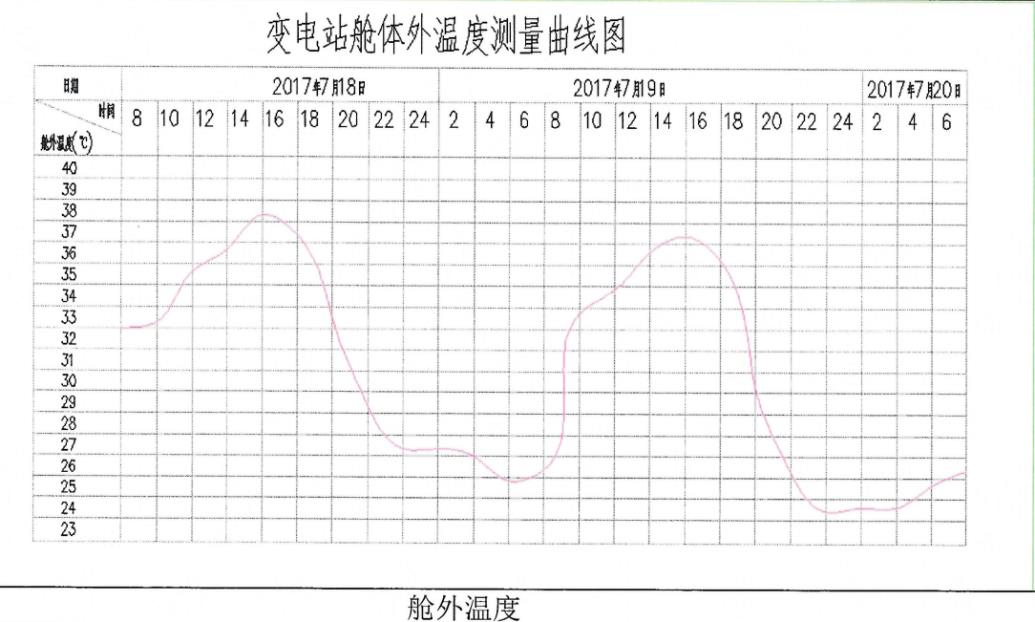 湘能楚天预制舱委托江苏省江测检测技术服务有限公司就预制舱的内部温湿度的恒定性进行现场测试验证。选取夏季节做了舱体的温升试验, 测温如下图所示,测温列表如下,可以看出:外部环境的温差变化在14摄氏度左右时,舱内温度的变化在0.5摄氏度左右。