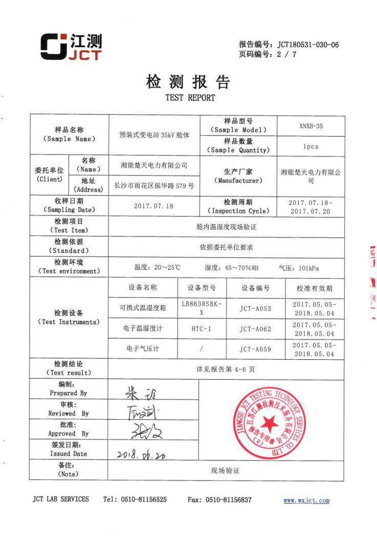 湘能楚天预制舱委托江苏省江测检测技术服务有限公司就预制舱的低温环境的适应性进行现场测试验证。